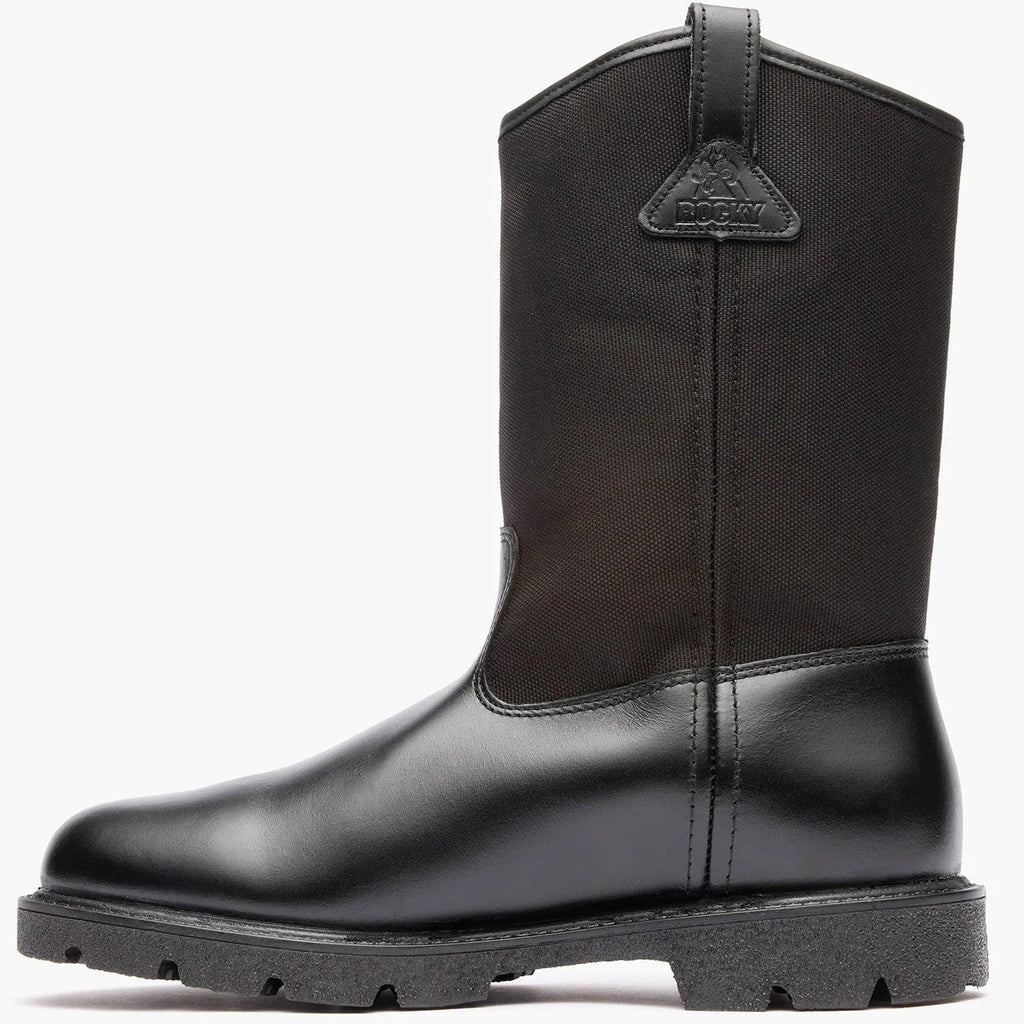 These Rocky® Warden Pull-On Wellington Public Service Boots are ready to report for work. Whether you're standing for hours working at border patrol, watching over Main Street in your squad car, or perfecting your carpentry work"¦ if you need black, polishable, lightweight, pull-on boots, then these men's boots are the right choice for you!