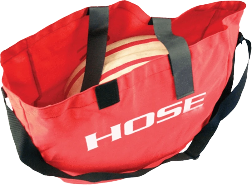 This hose bag is designed to carry any type of hose that is stored coiled. You can easily place a hydraulic extrication hose, forestry hose, and even large diameter hose (LDH) into the bag. The bag will hold approximately 100’ of 3” hose, and approximately 200’ of 1 1/2” hose or 1 section of LDH. This bag also has an attached adjustable shoulder strap. This bag is made of 22 oz. vinyl, available in red and weighs18 oz. The overall dimensions are 22”L x 22”W x 8”D.