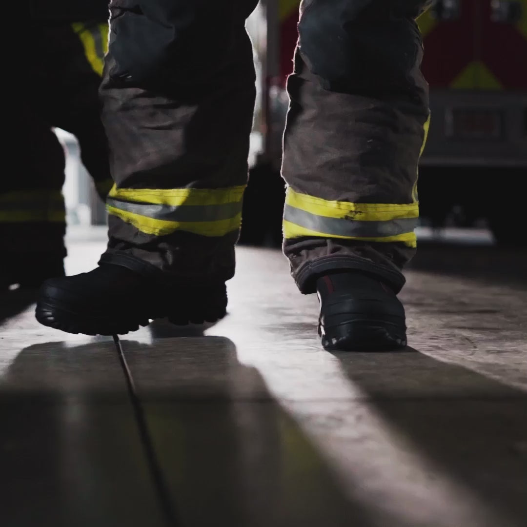 The Rocky Men’s Code Red Structure NFPA Composite Toe Boots are built for fighting fires in a structured environment. These NFPA 1971 certified Rocky boots are 14 inches in height with pull handles for quick donning/doffing, and the 3M™ Scotchlite on the sides is reflective to enhance visibility. The leather construction and Nomex stitching provide fire-resistant protection, while the steadfast thermal barrier provides waterproofing and bloodborne pathogen resistance. These firefighter boots also meet ASTM F2413 protective toe, electrical hazard, and puncture-resistant standards, giving you all-around protection for fire rescues.