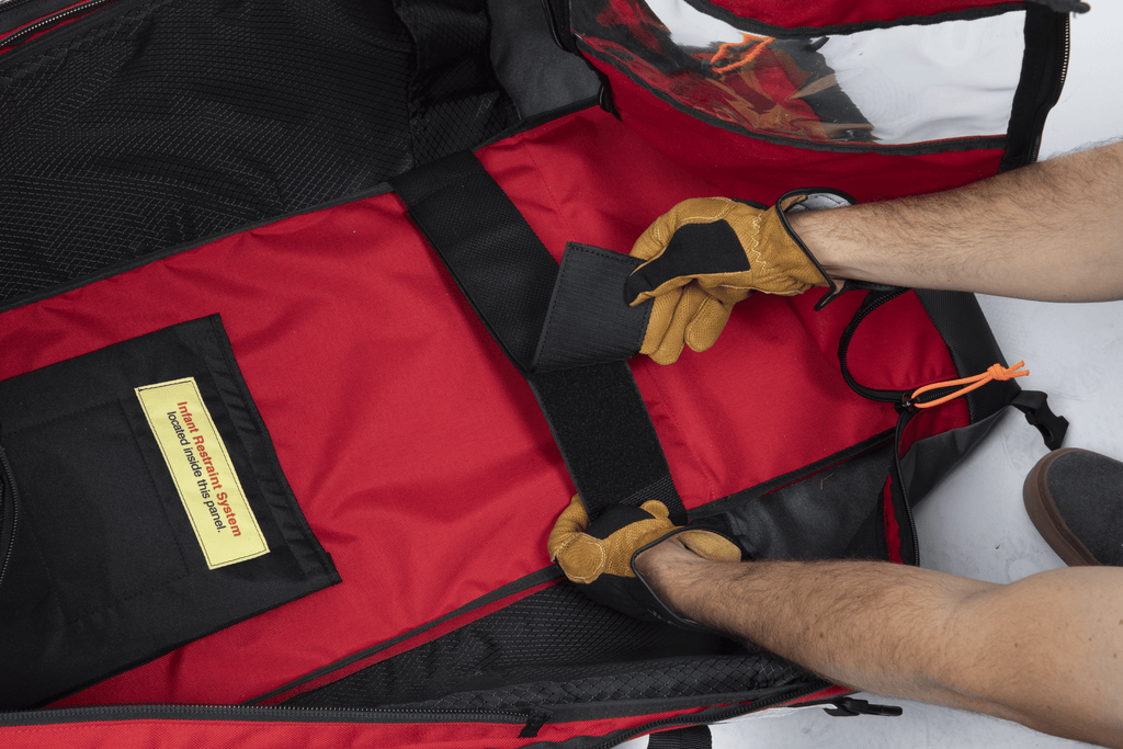 The updated version of the Helitack Stork has new features that improve the safety and efficiency of infant transport during helicopter hoist rescue operations. The opening panel was redesigned to allow access across the entire length of the Stork, making it possible to load the packaged patient on longer backboards. To increase durability and provide anti-skid protection, the bottom outside panel is now RhinoTek® fabric. RhinoTek is a high grade abrasion resistant fabric that is rugged and anti-skid in wet, dry, hot, and cold conditions. The new buckle system is lighter and lower profile to reduce bulk when space is limited. The Stork pediatric rescue carrier is a lightweight transporter that can be easily collapsed for stowage on airship. The bottom and sides are lined with 25-mm (1-in) closed-cell foam to provide structural rigidity and buoyancy. The Stork will provide protection for your most precious cargo in the harshest environments.