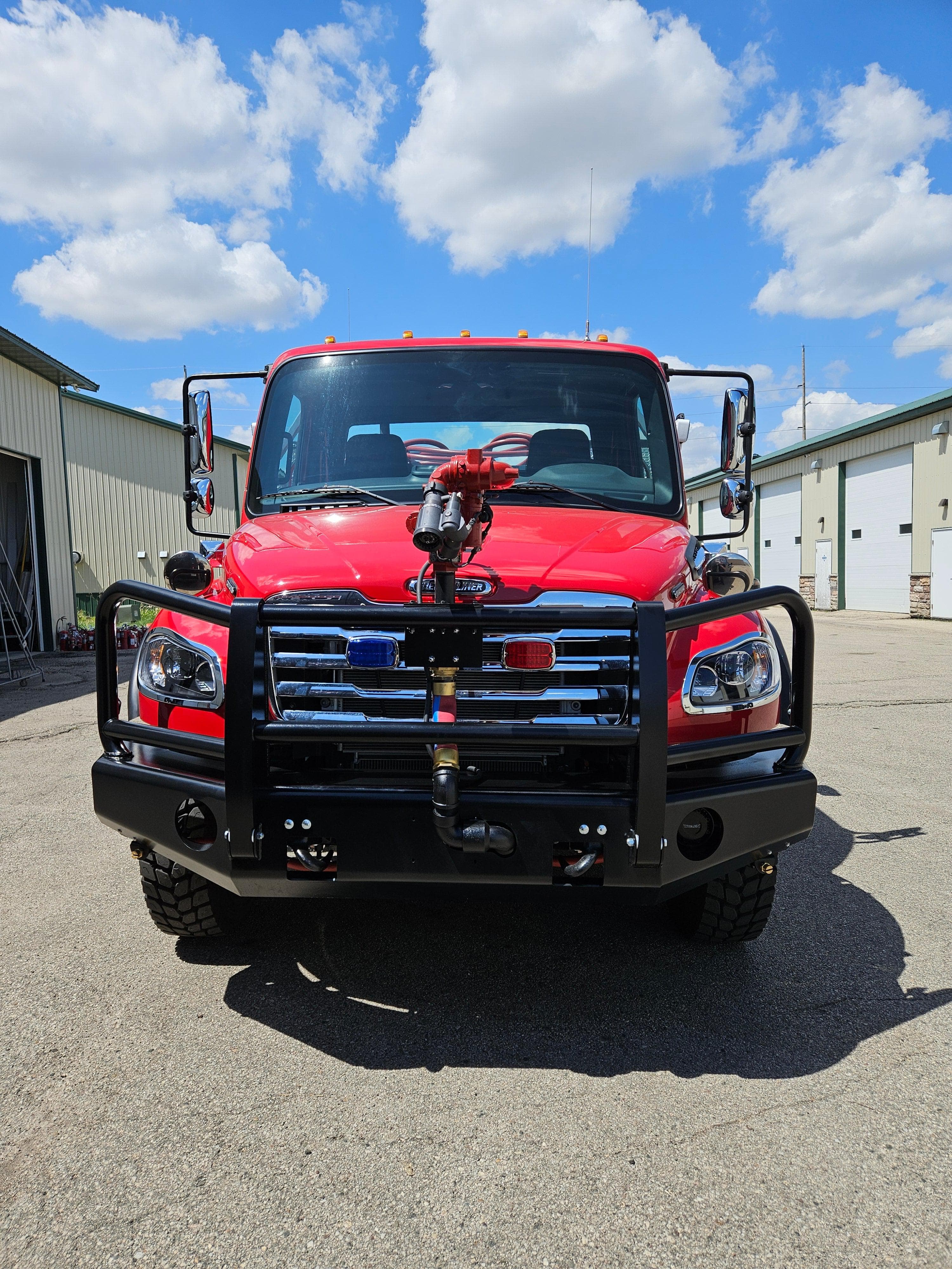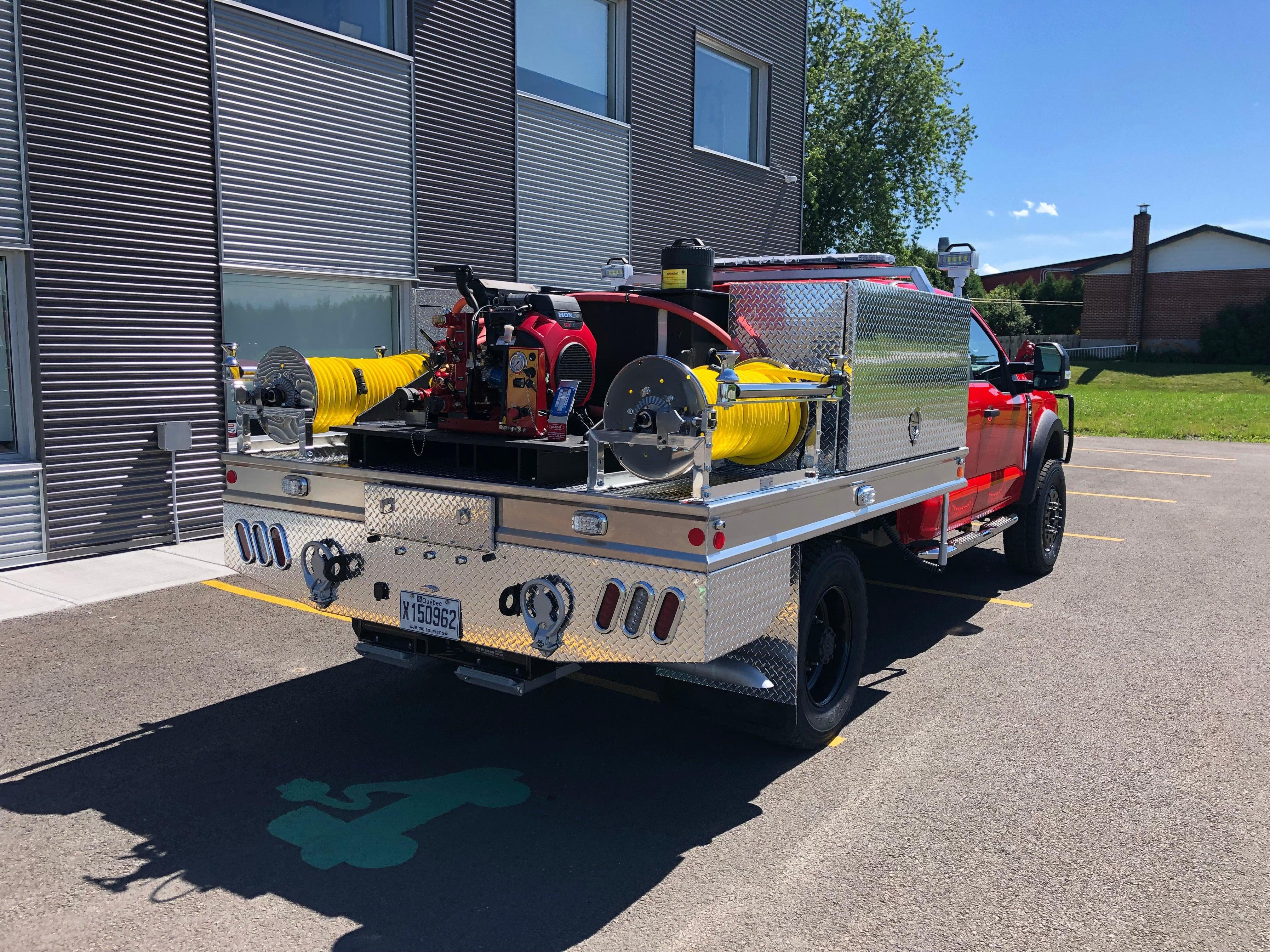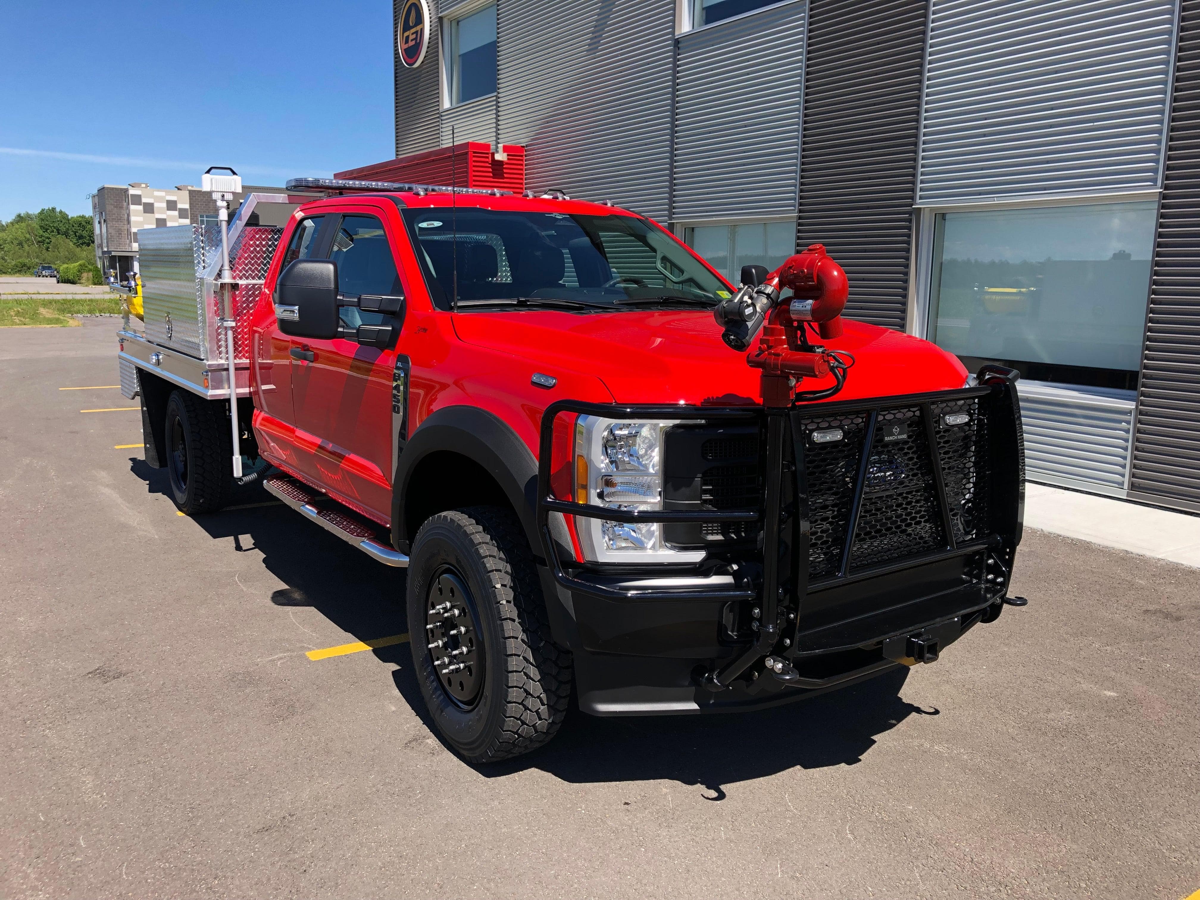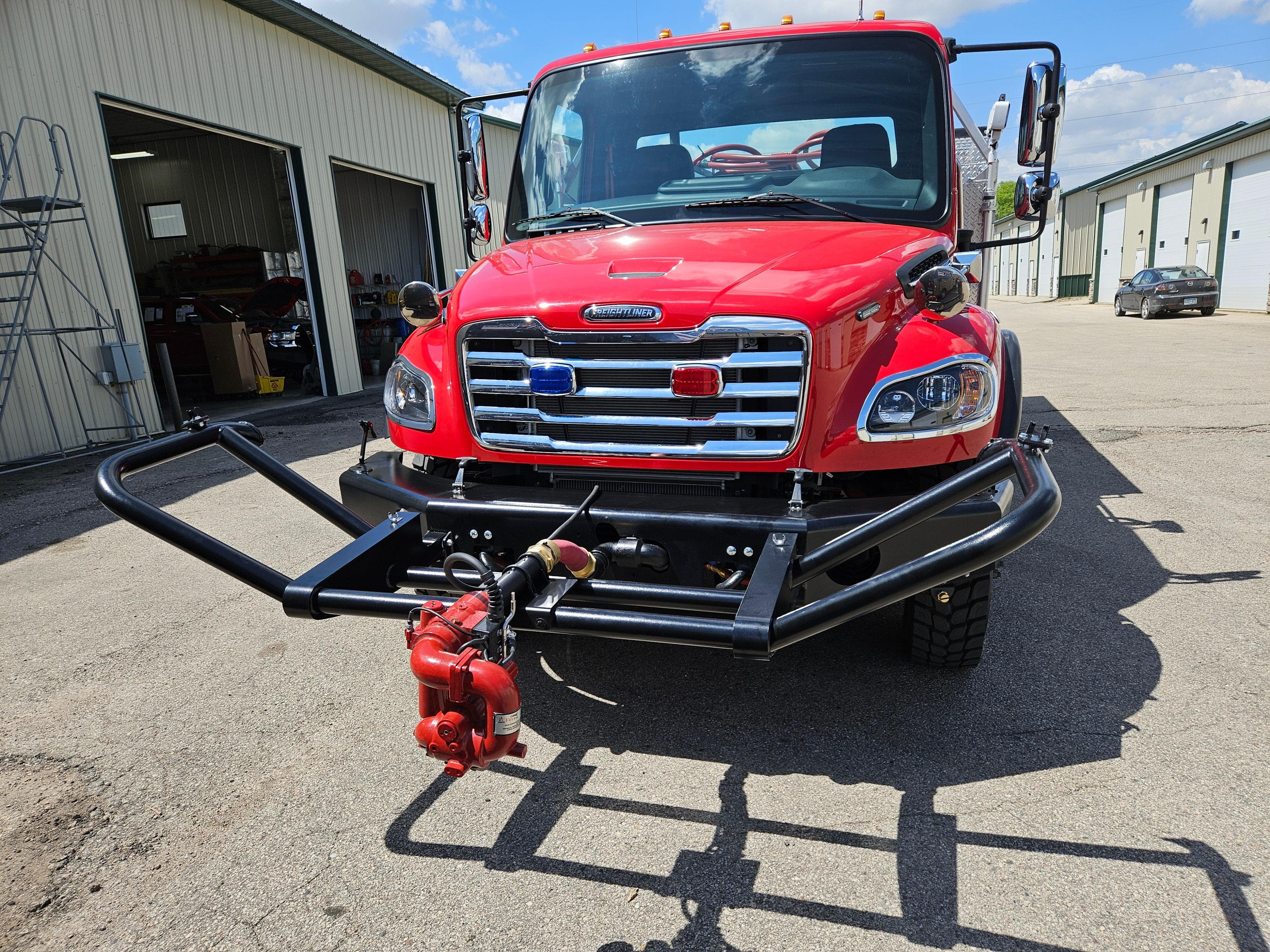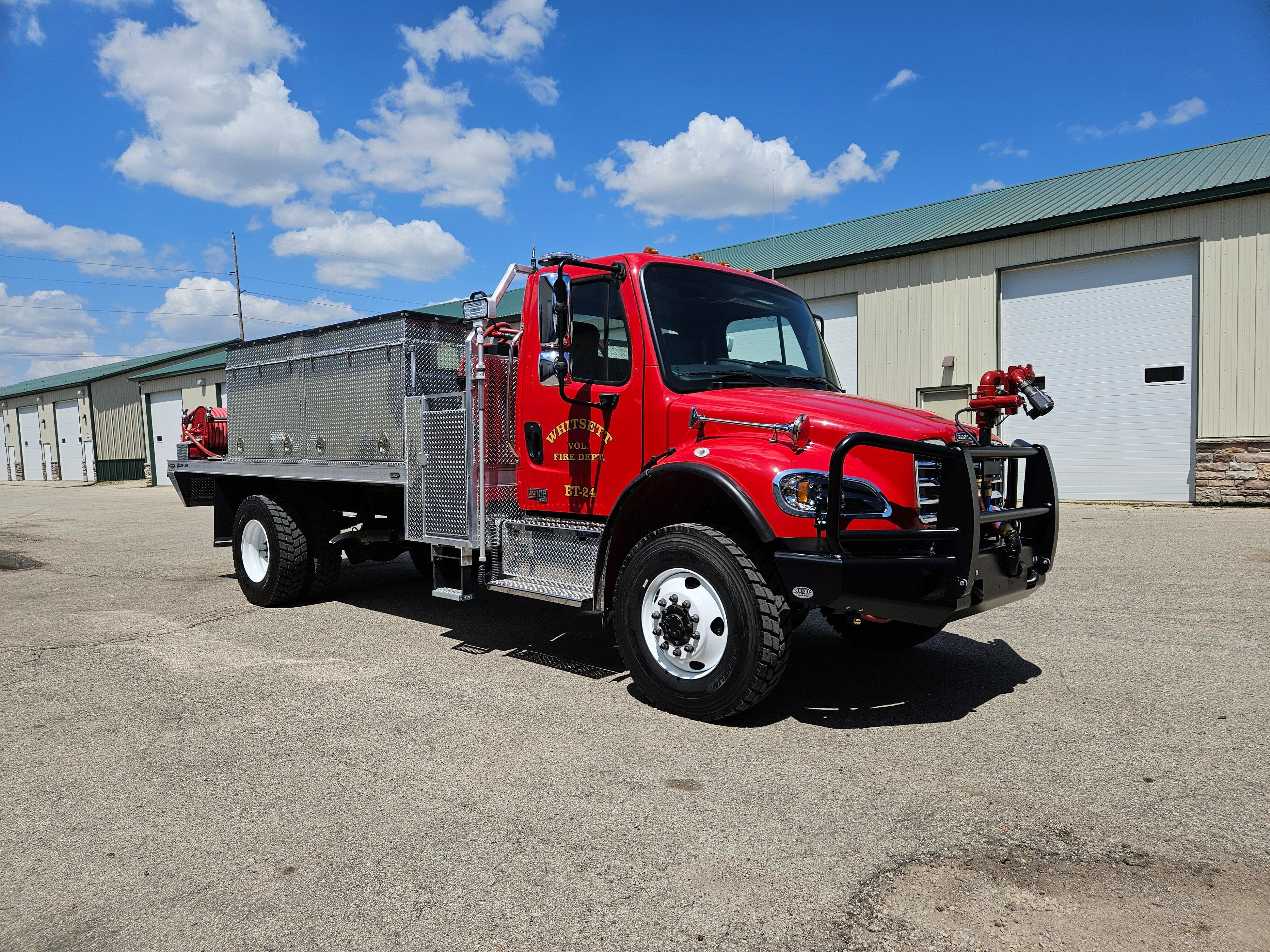 We provide everything including the chassis, flat bed body, skid unit, custom front bumper, Whelen LED lighting package and delivery!