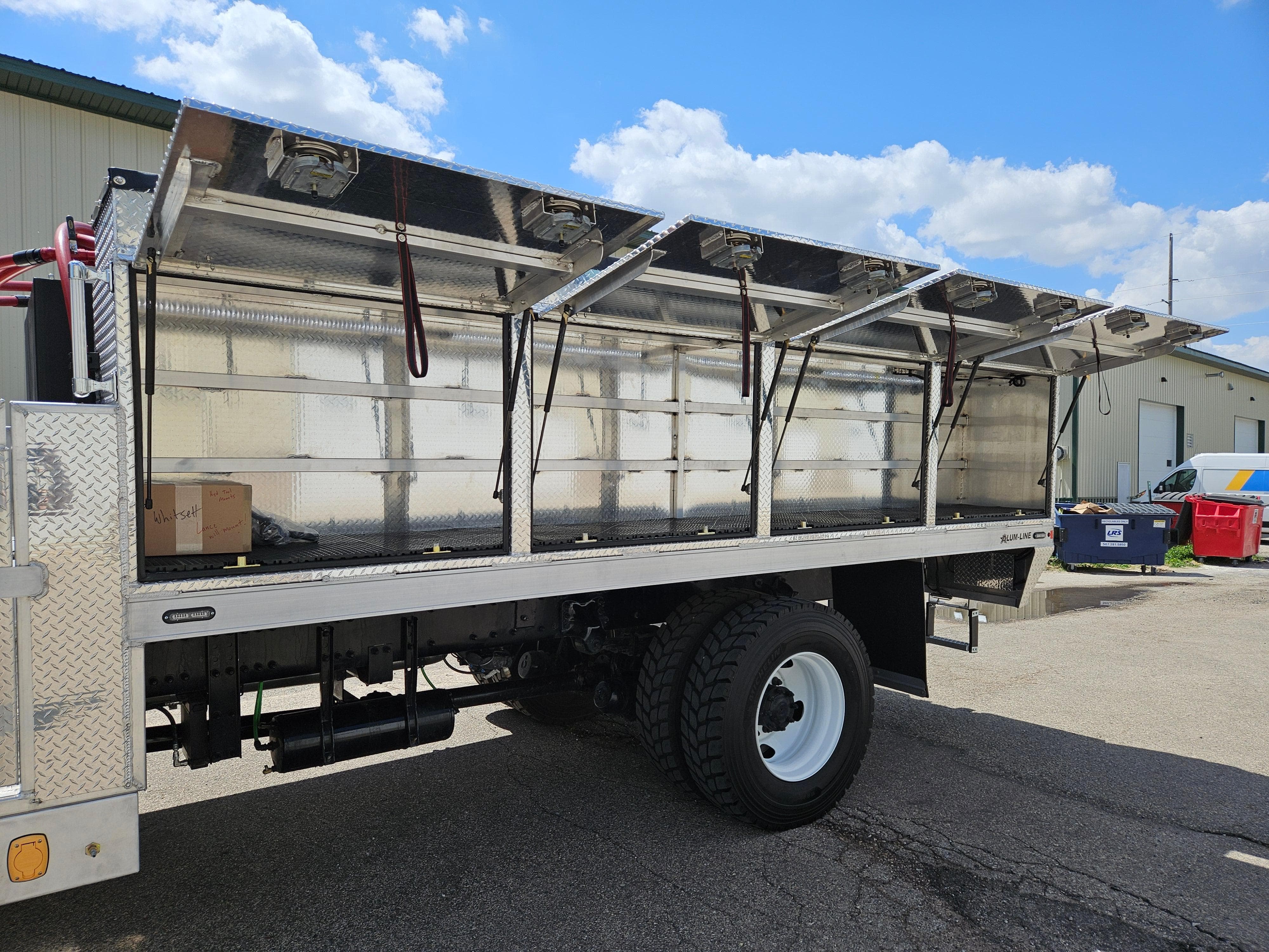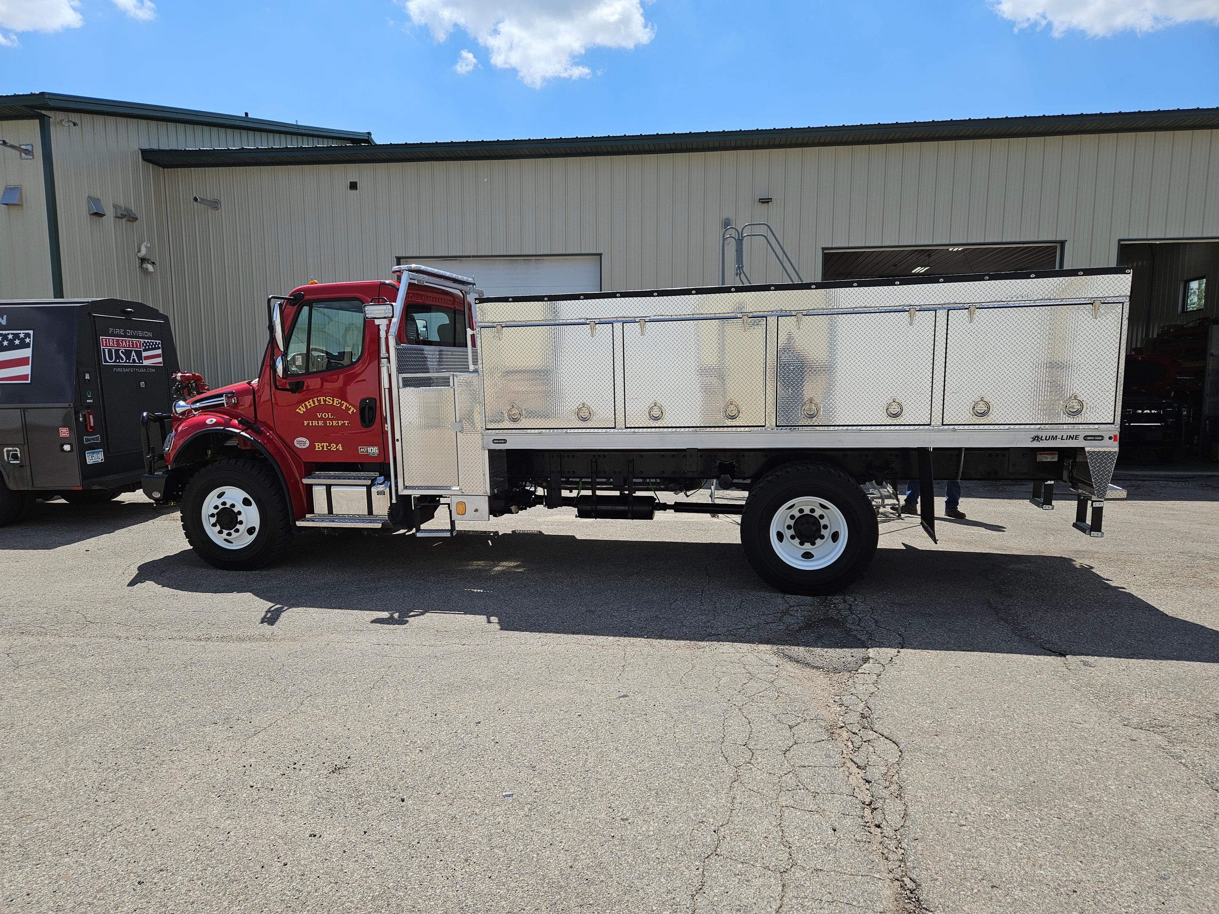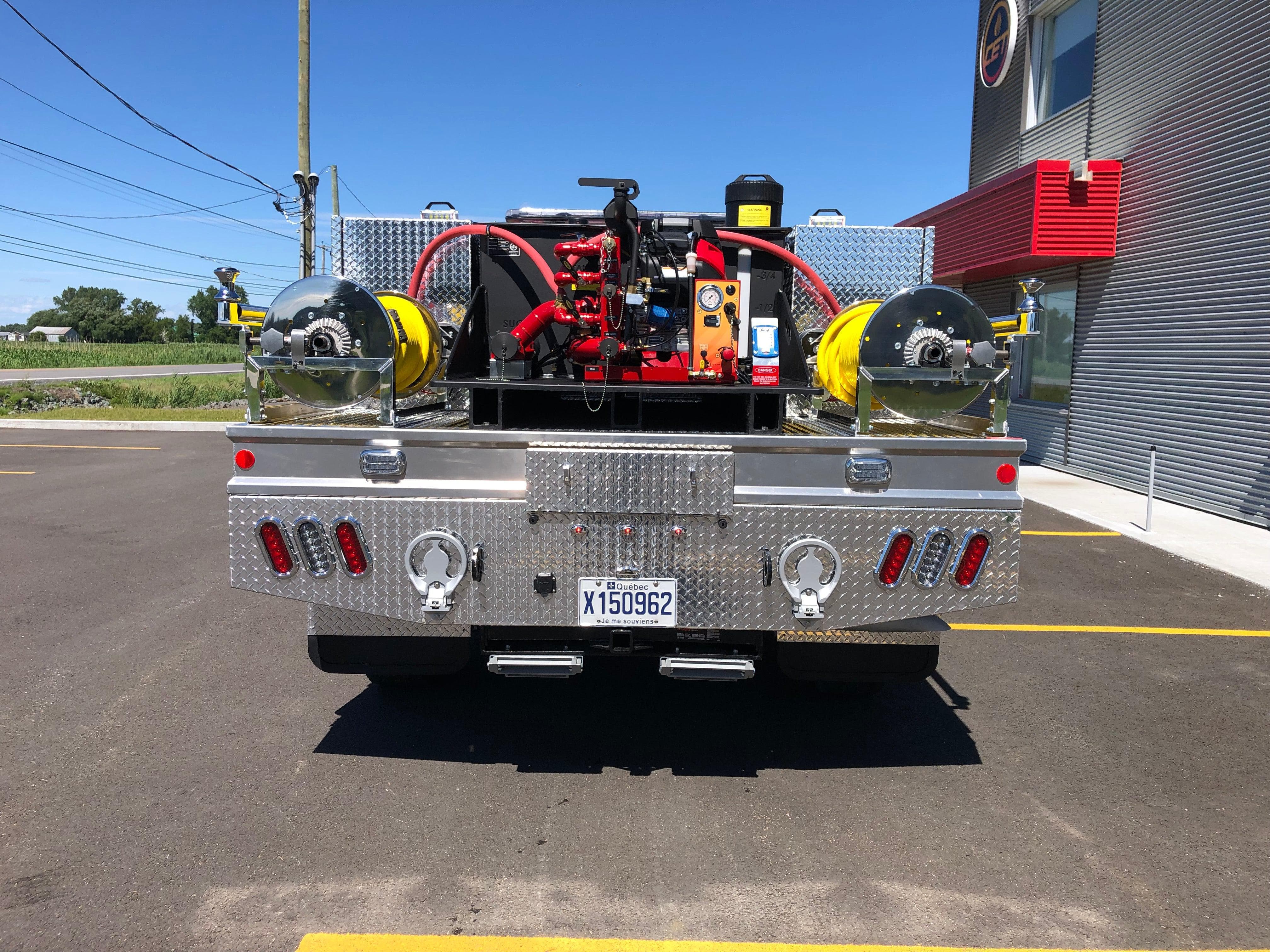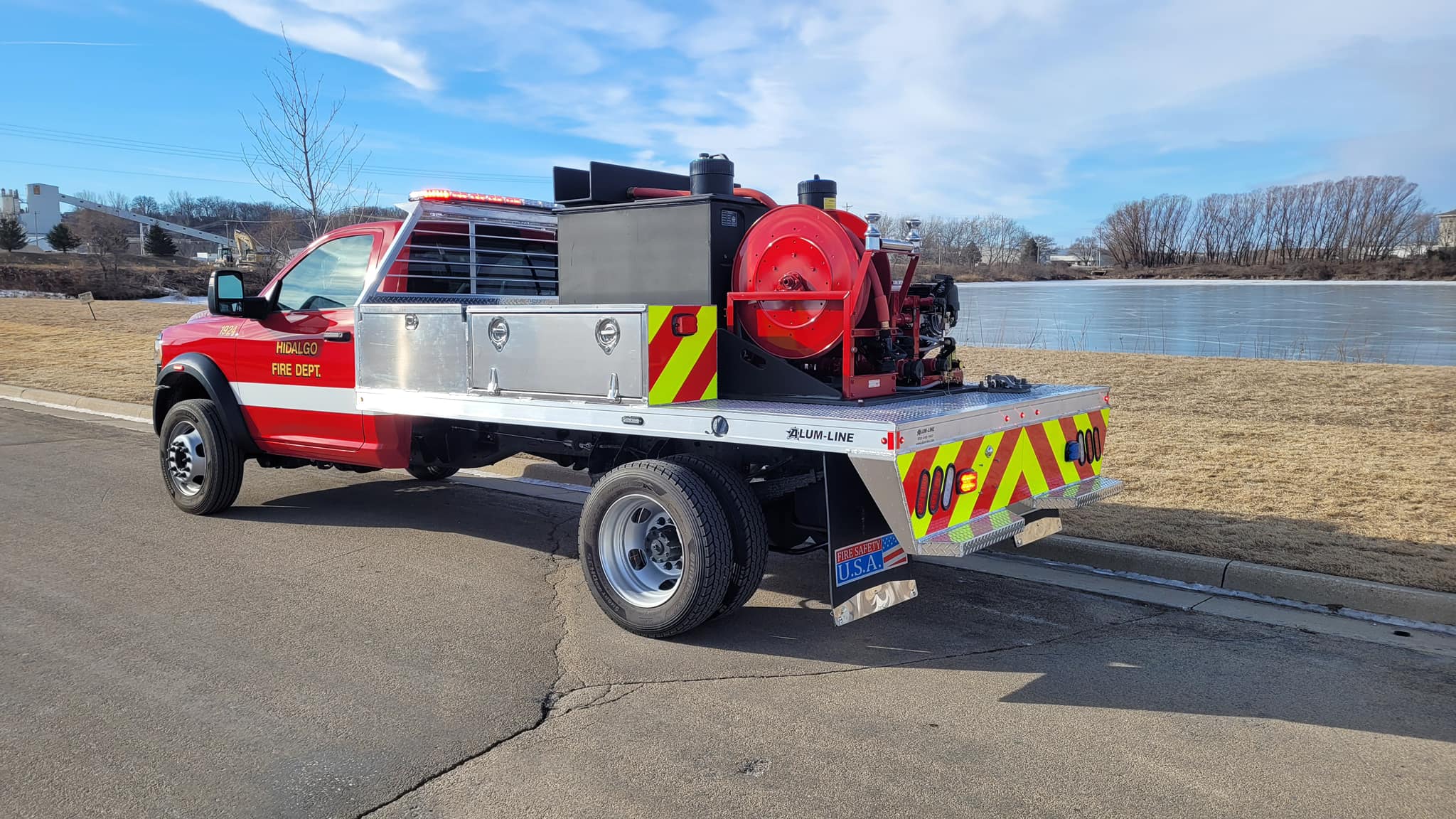We provide everything including the chassis, flat bed body, skid unit, custom front bumper, Whelen LED lighting package and delivery!