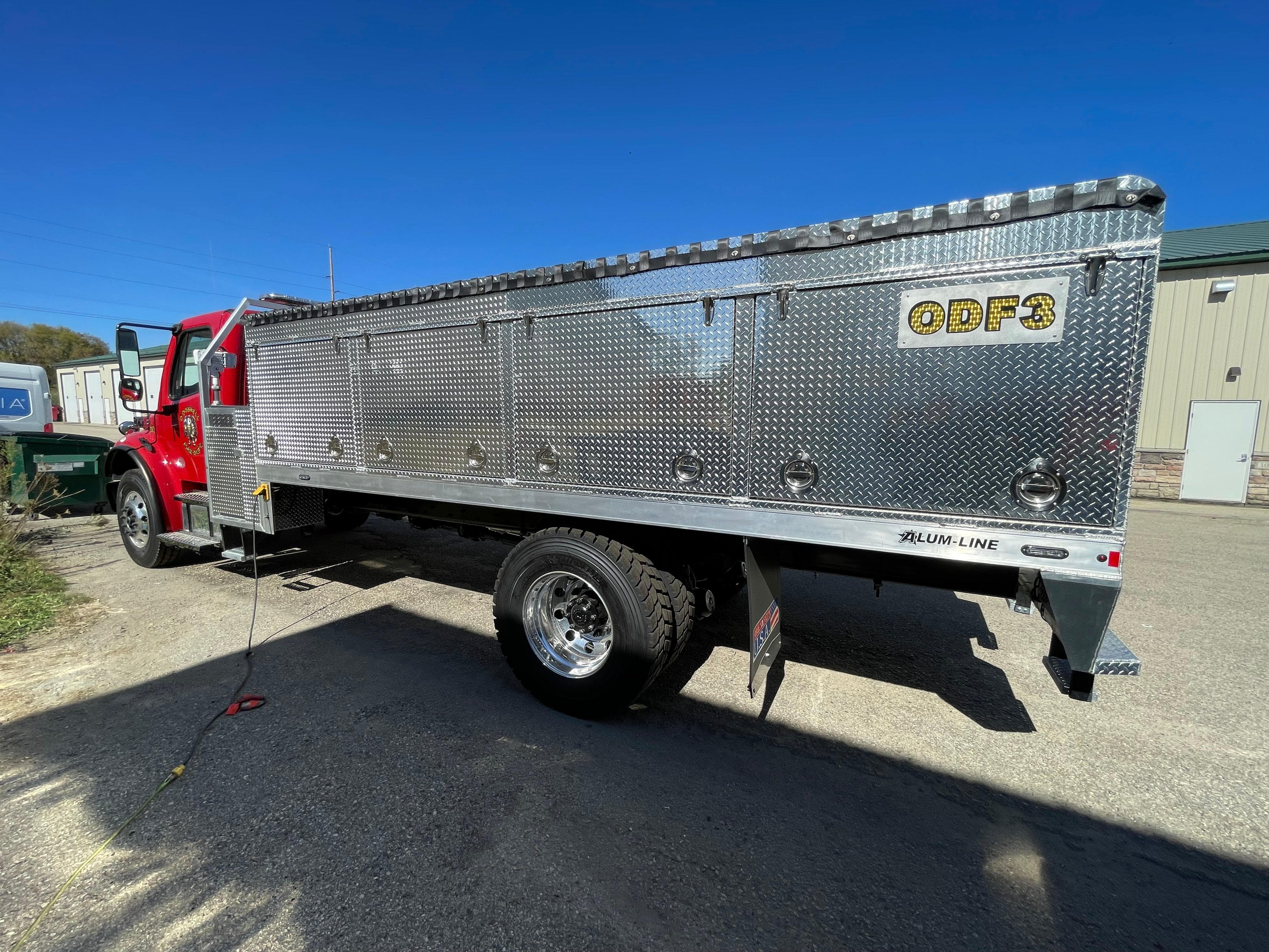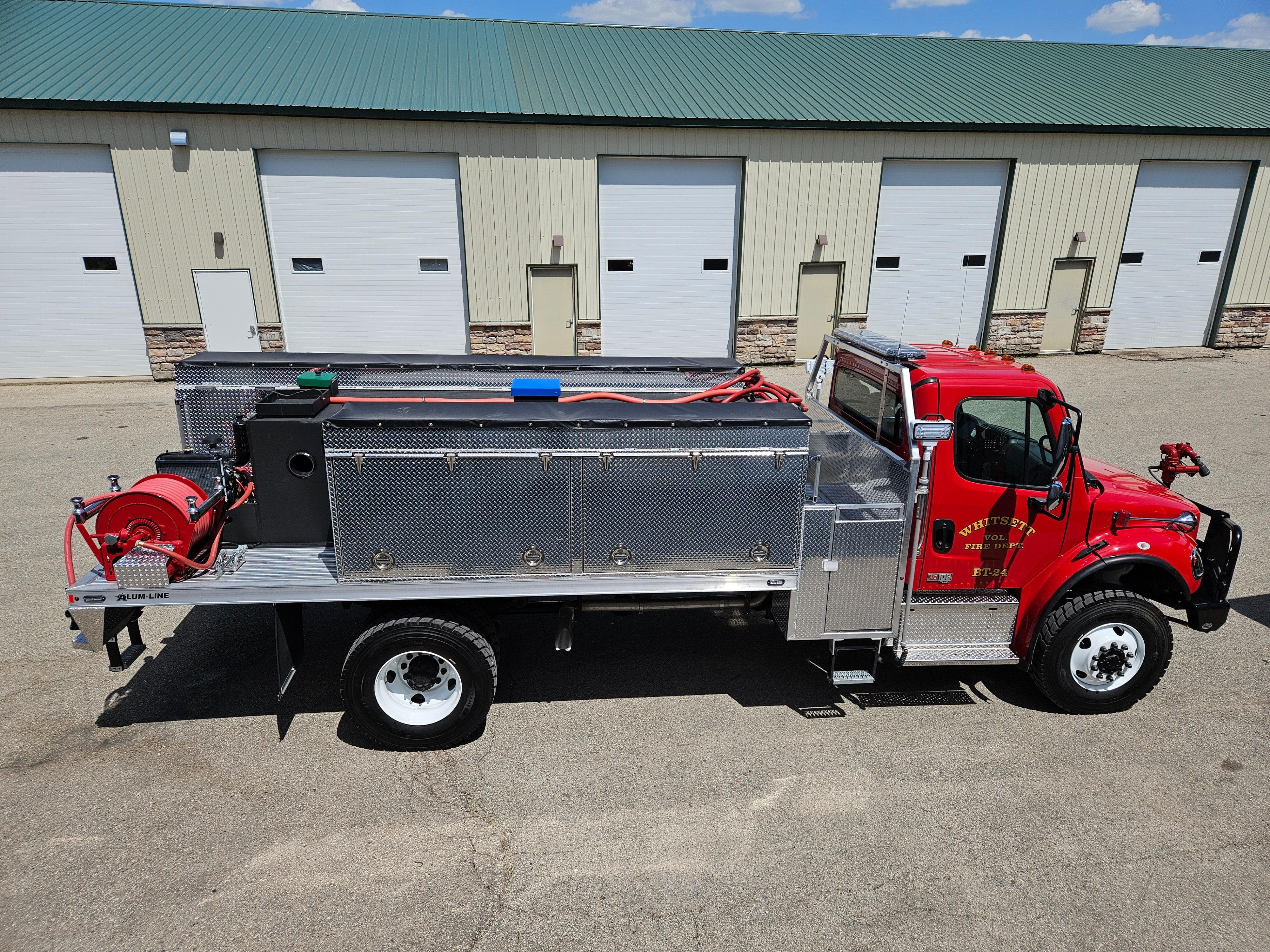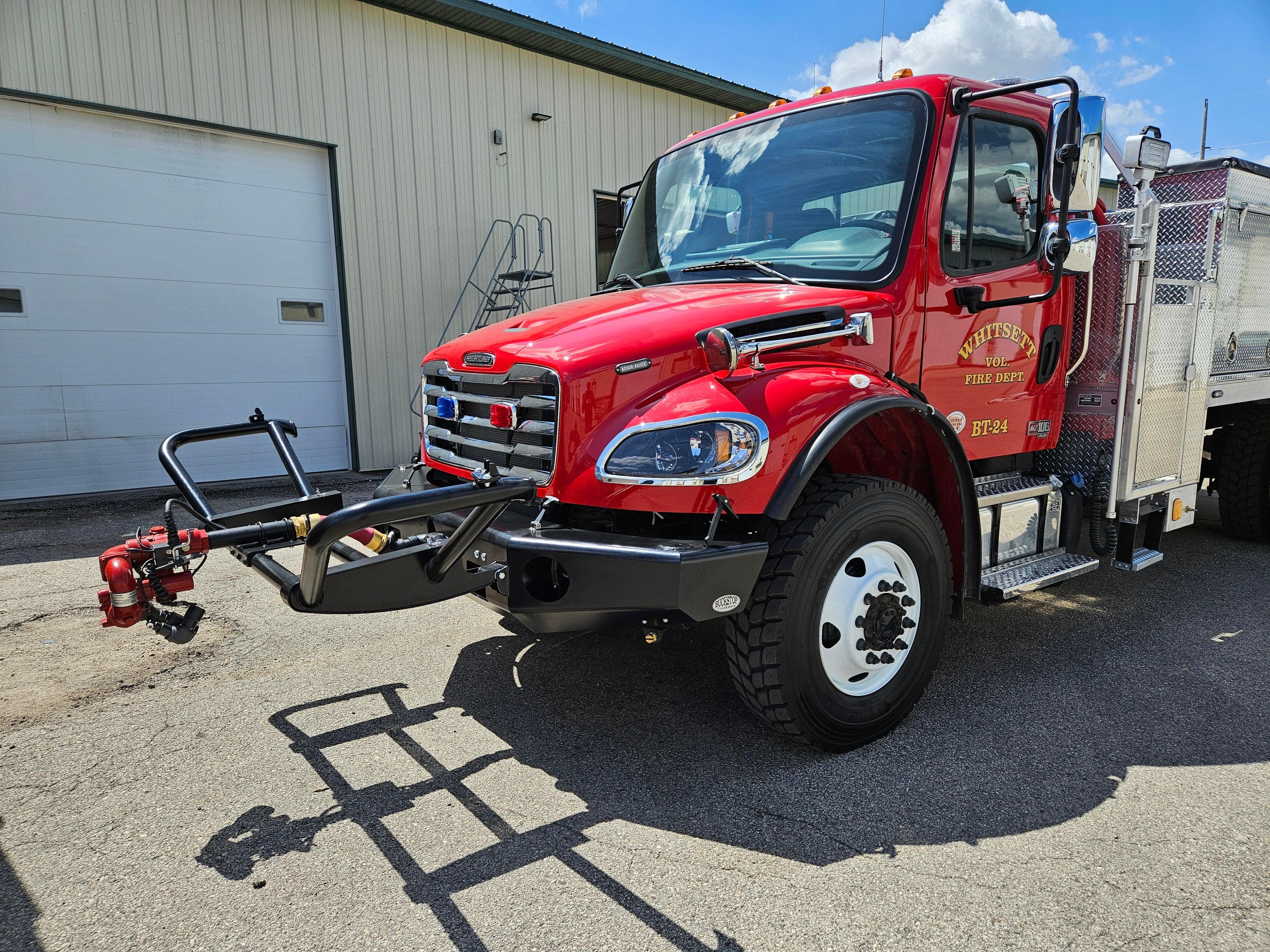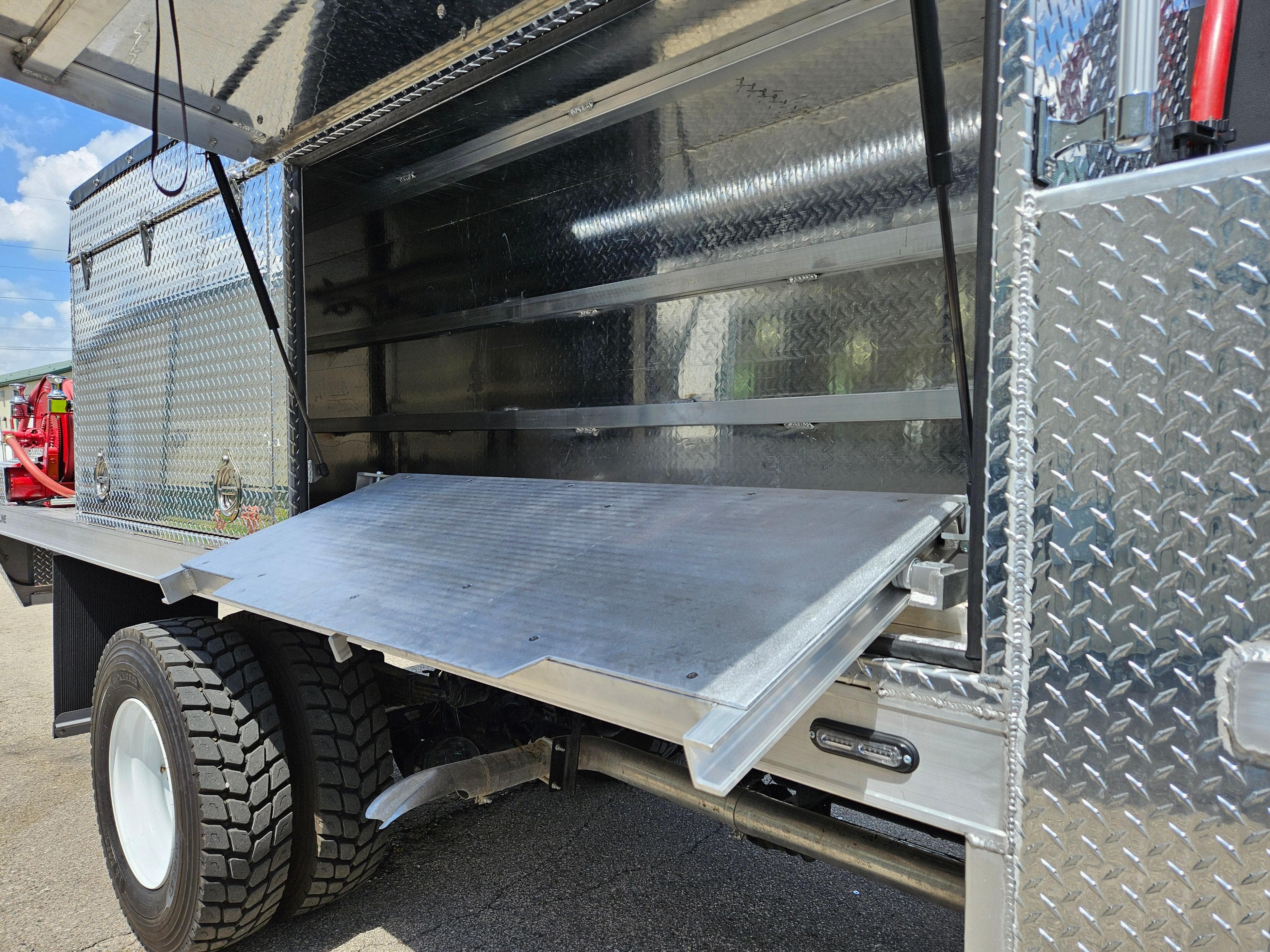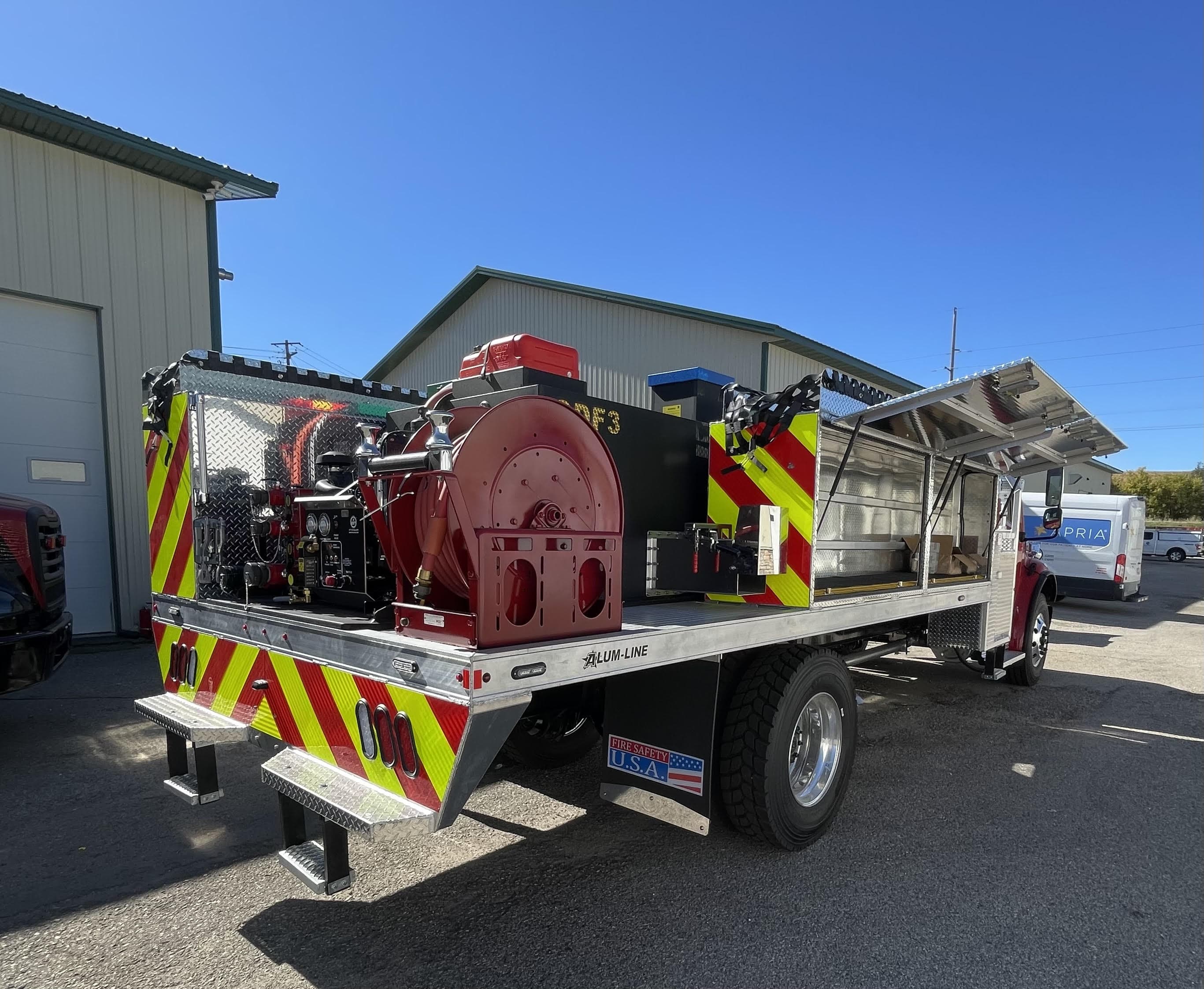 We provide everything including the chassis, flat bed body, skid unit, custom front bumper, Whelen LED lighting package and delivery!