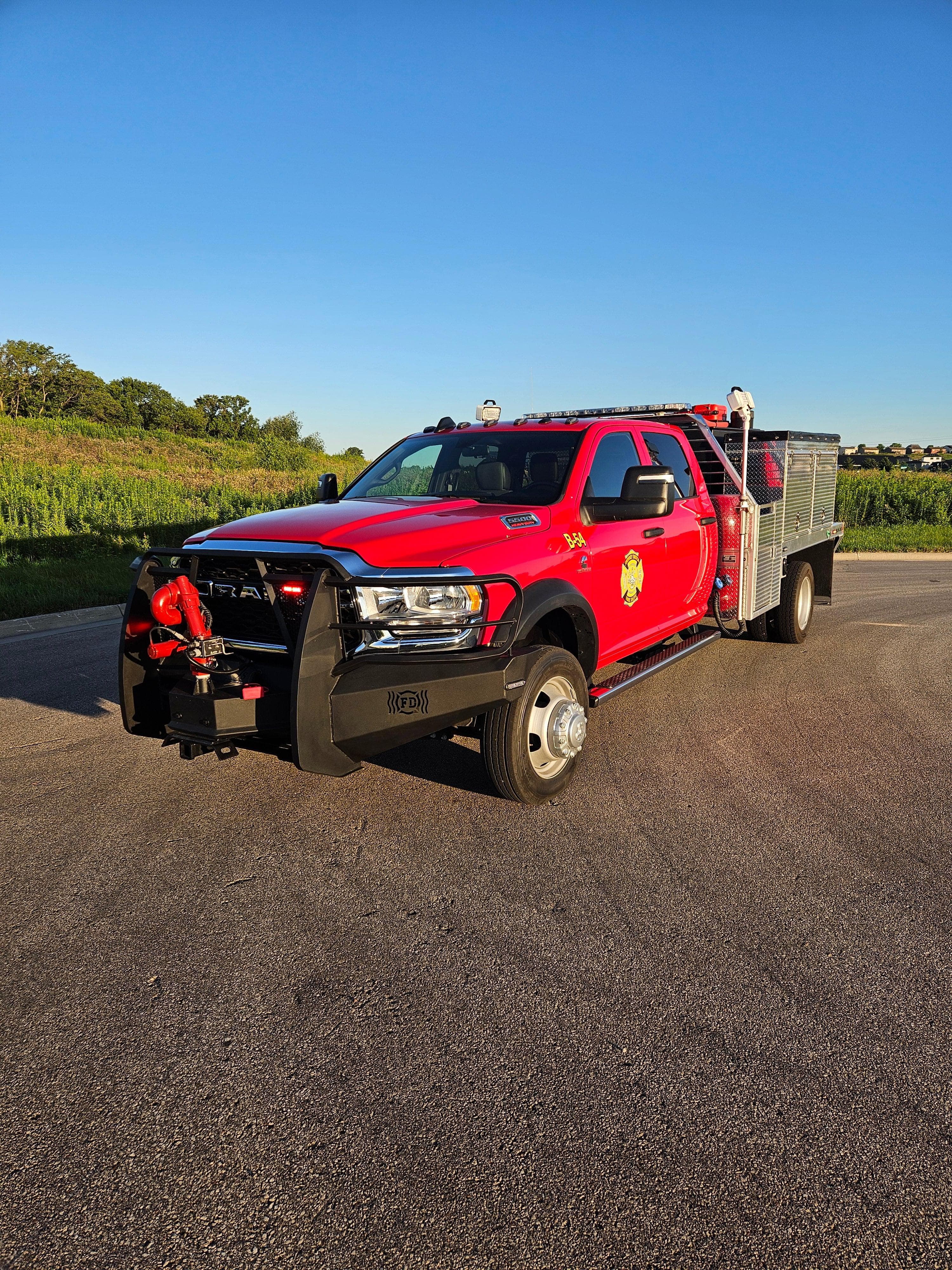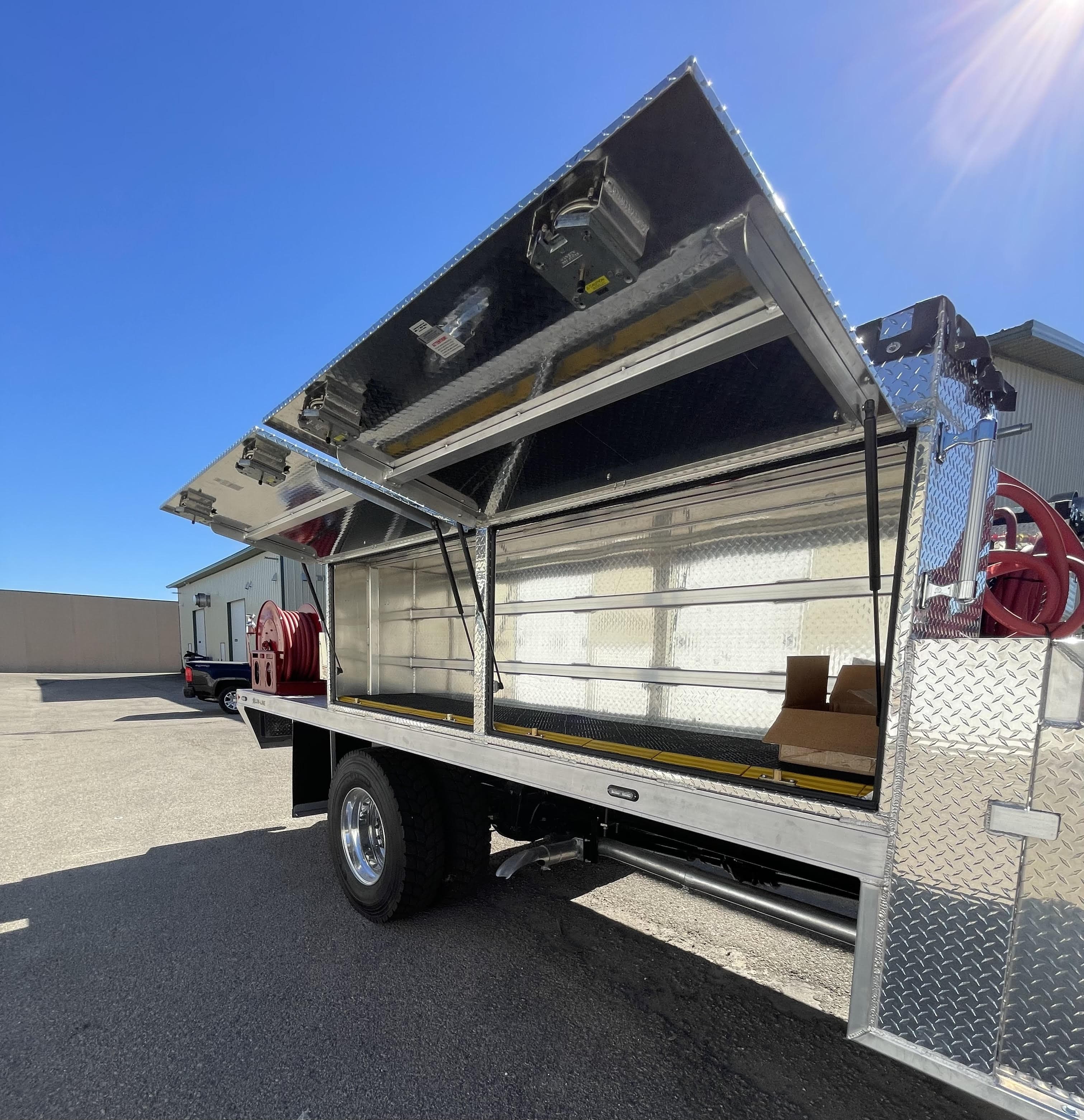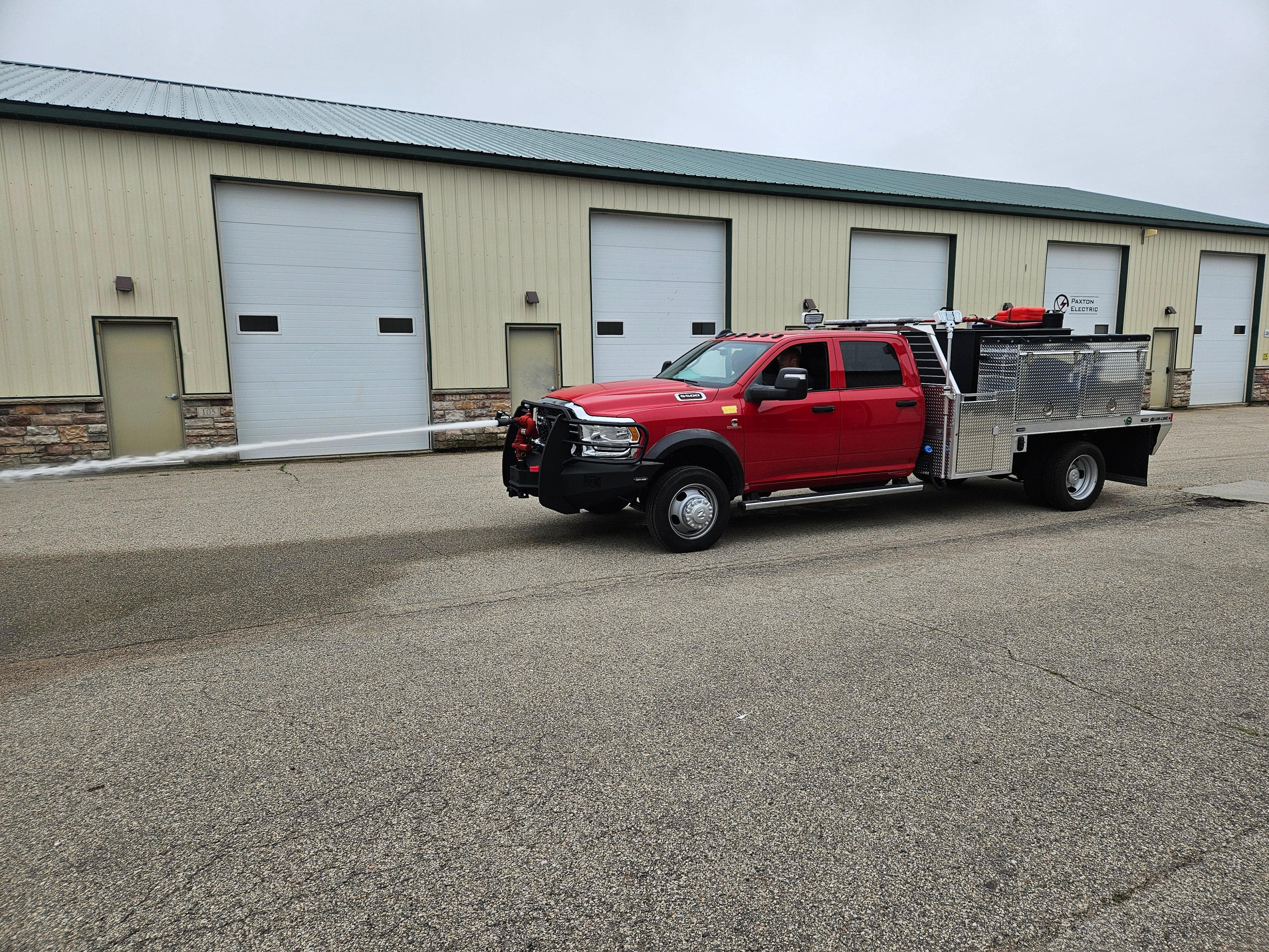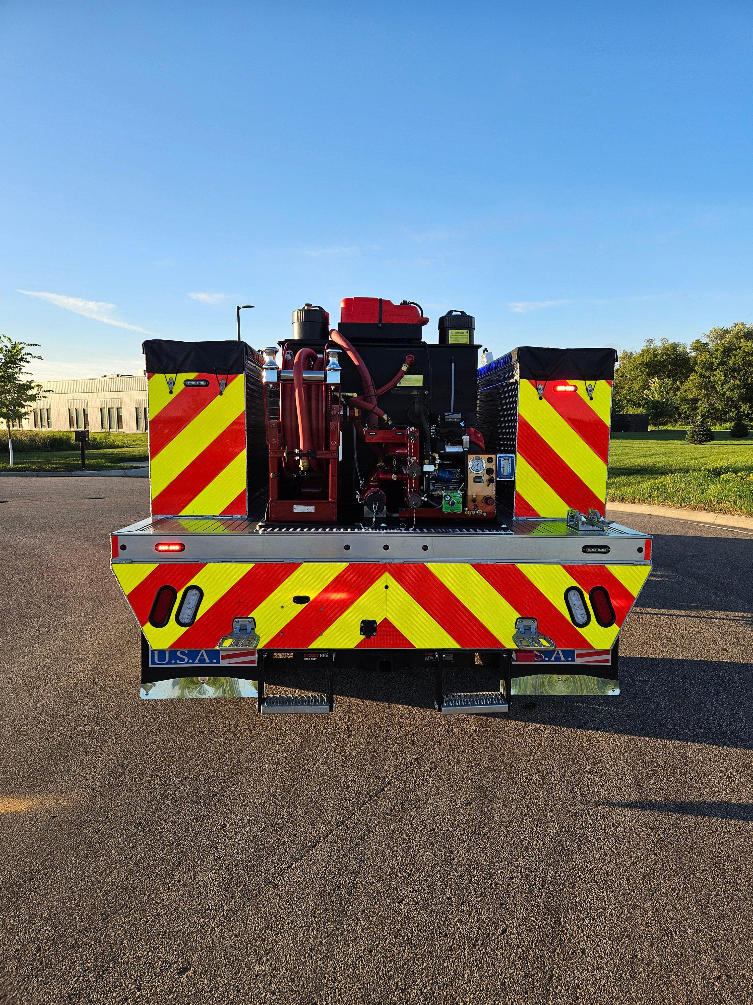 We provide everything including the chassis, flat bed body, skid unit, custom front bumper, Whelen LED lighting package and delivery!