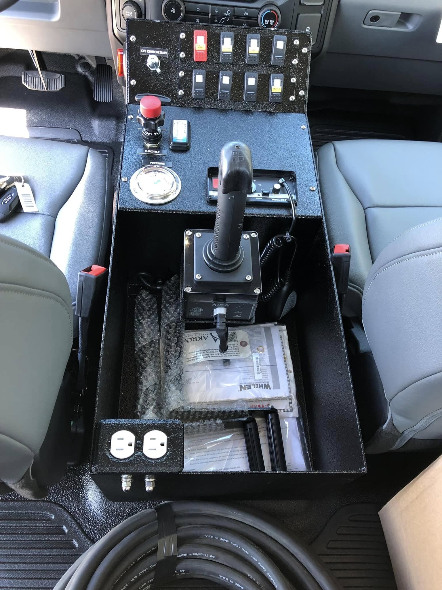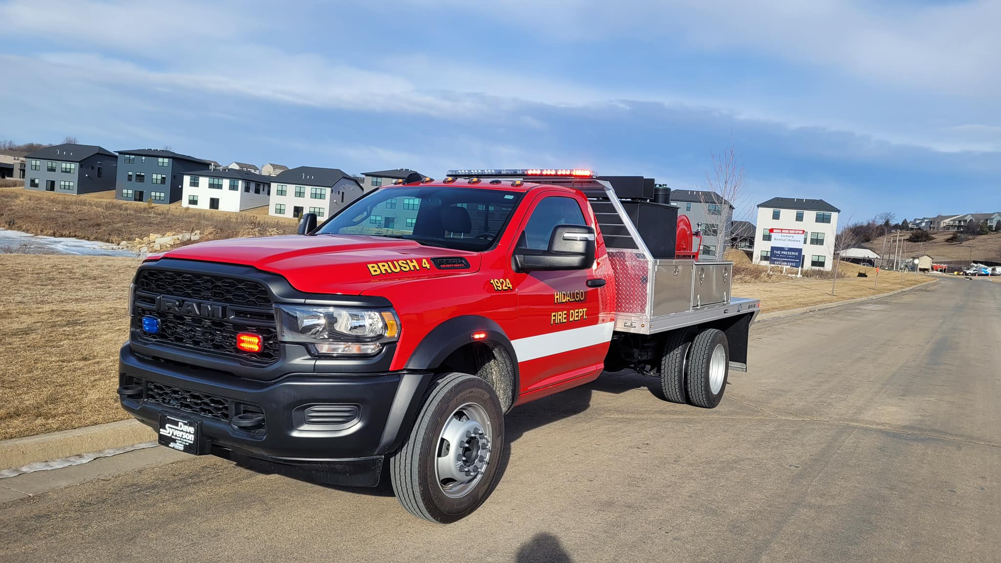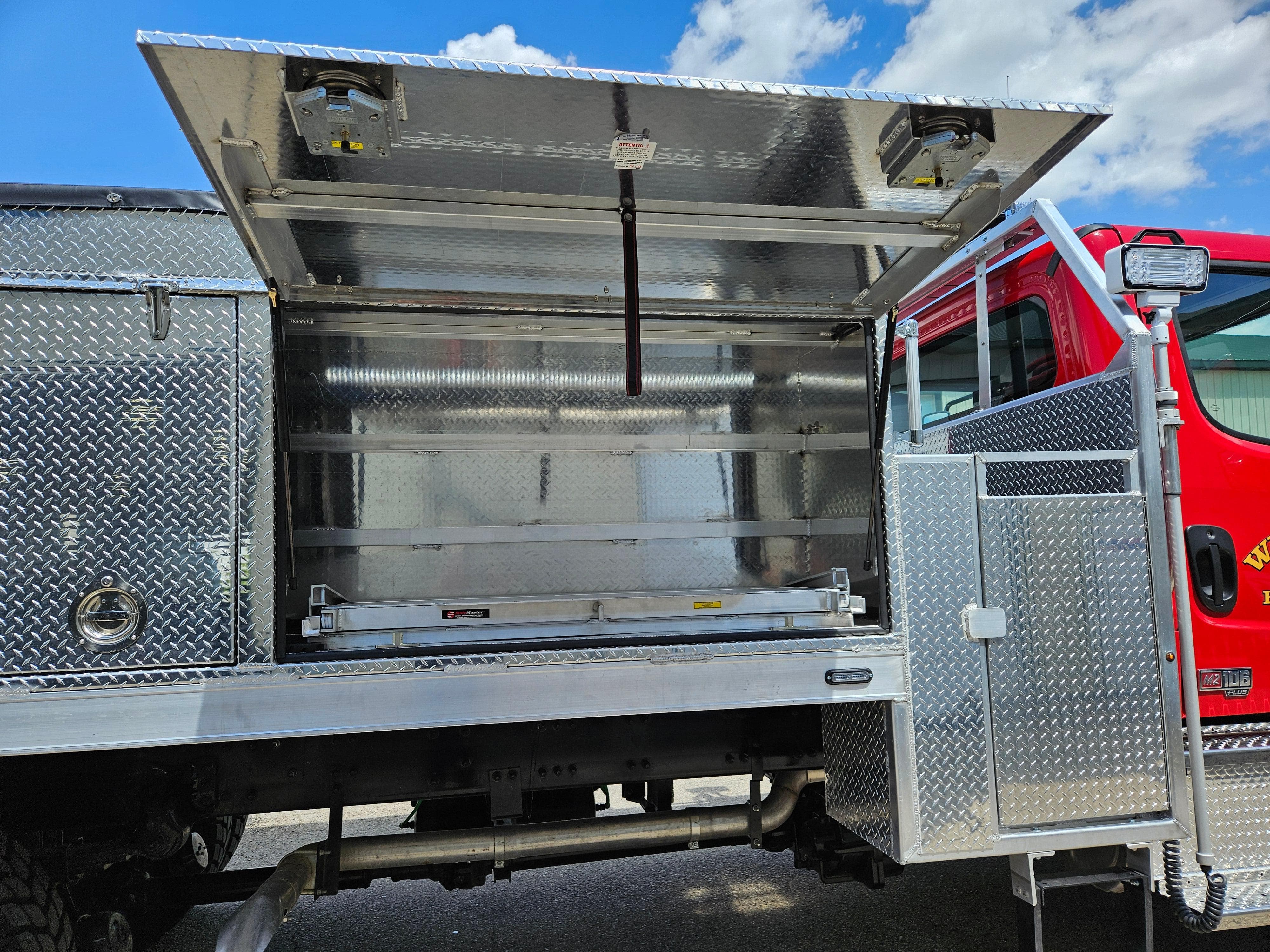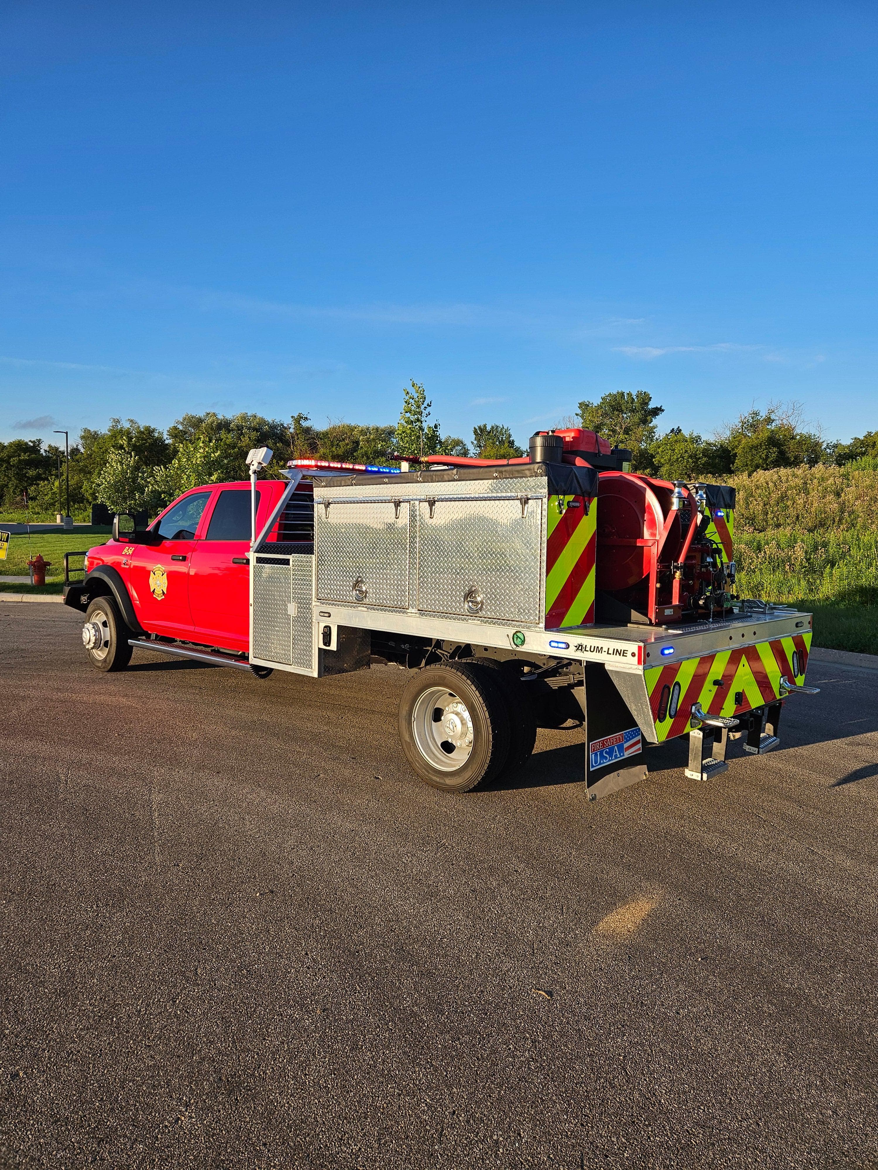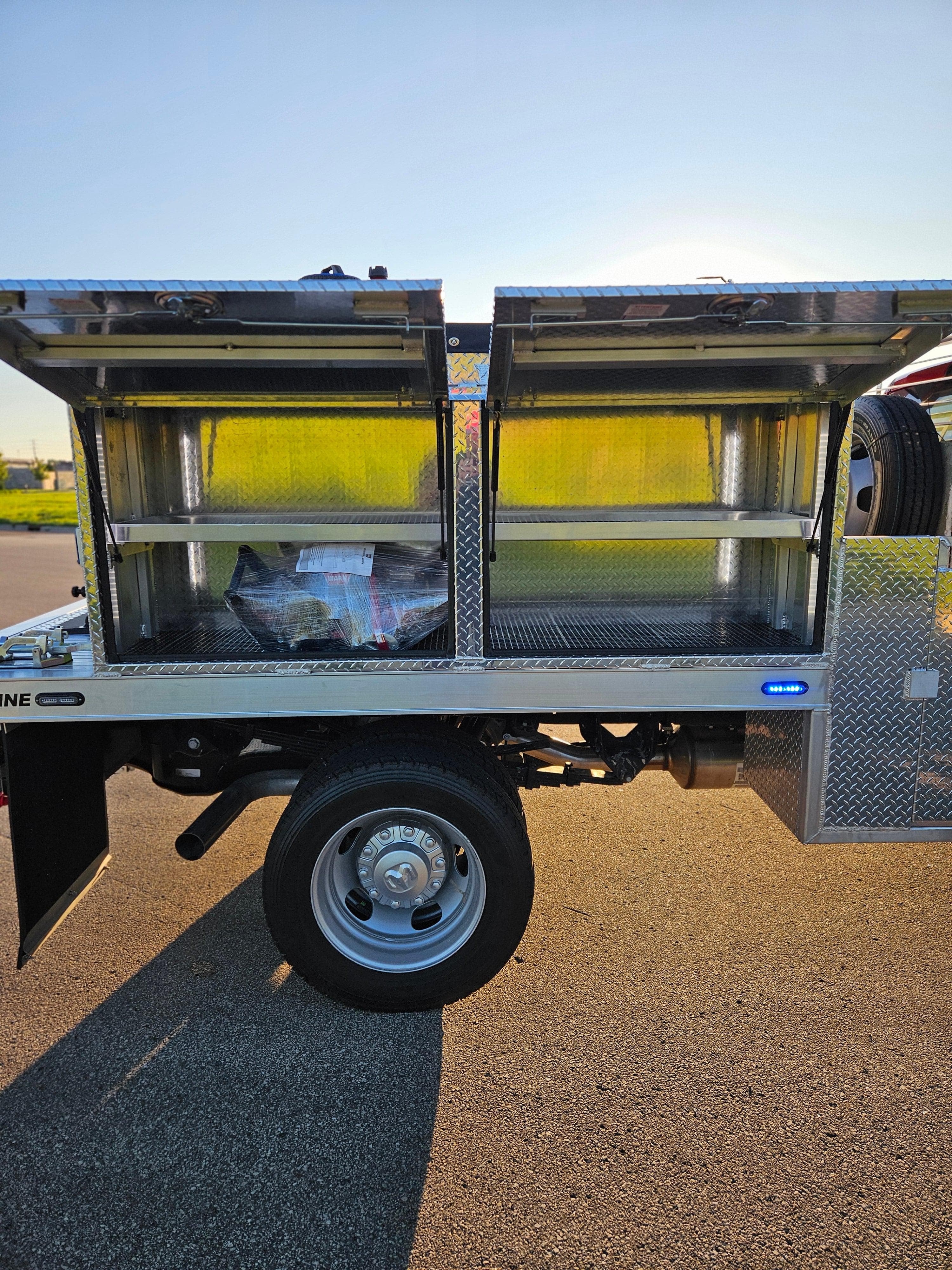 We provide everything including the chassis, flat bed body, skid unit, custom front bumper, Whelen LED lighting package and delivery!